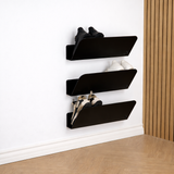 ⚠️FORUDBESTILLING - levering 1-2 uger⚠️ Mads skohylden er en stilren og robust skohylde i 3 mm bukket stål med slidstærk pulverlakering. Ombukket mod væggen sørger for, at skoene ikke rammer væggen, men hviler pænt på hylden. Plads til 2 par voksen sko og 3 par børnesko. Nem at montere – skruer og universal rawlplugs medfølger.