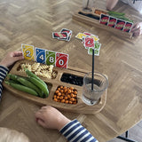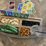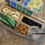 Gør snacktid, til kvalitetstid. Den indbyggede rille er perfekt til at holde spillekort oprejst, hvilket er ideelt for børn, der har svært ved at holde mange kort, eller for personer med fysiske udfordringer, der gør det vanskeligt at fastholde kort. OBS: leveres ubehandlet og skal olieres, med vedlagte olie og olieringsguide.